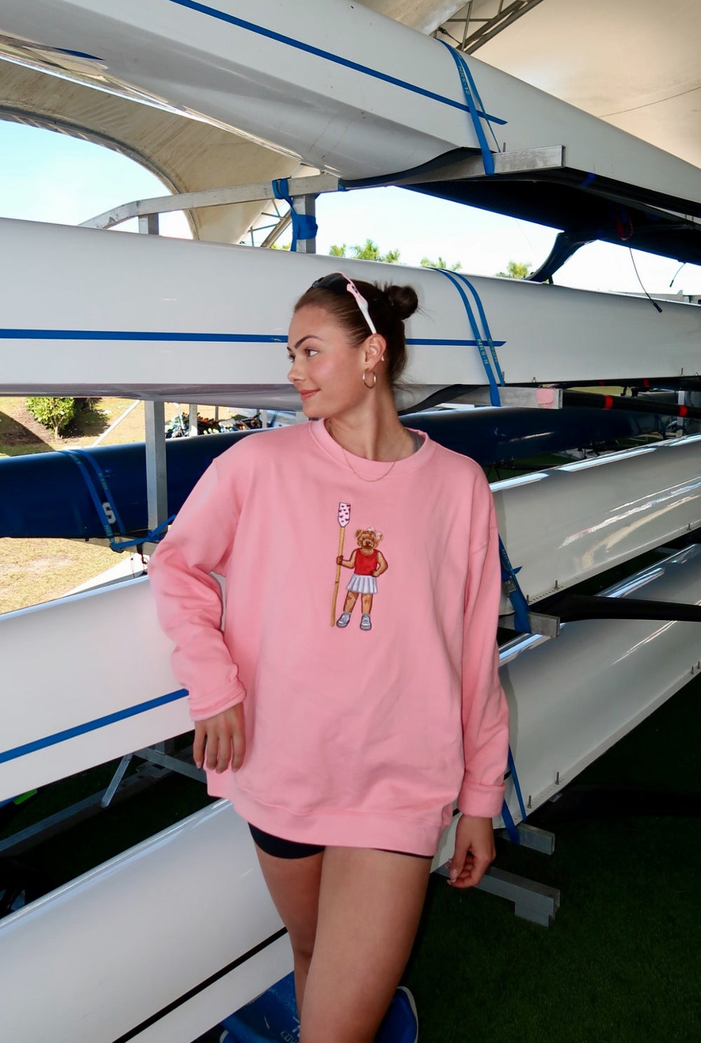 The Kate x Crew Dog Valentine’s Day design started with wanting to celebrate femininity in sport. I’ve always been pretty “girly,” and often times that can be underestimated or treated like it doesn’t belong in competitive spaces. Especially in a sport like rowing where practices are intense, sweaty, blister-filled, and very unglamorous, I wanted to create something that embraces both strength and elegance. This design is about capturing all kinds of expression, because there’s no single way to look like a rower.